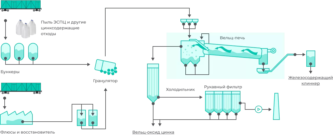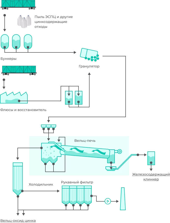 Мощность: переработка свыше 100 тыс. тонн цинксодержащего сырья